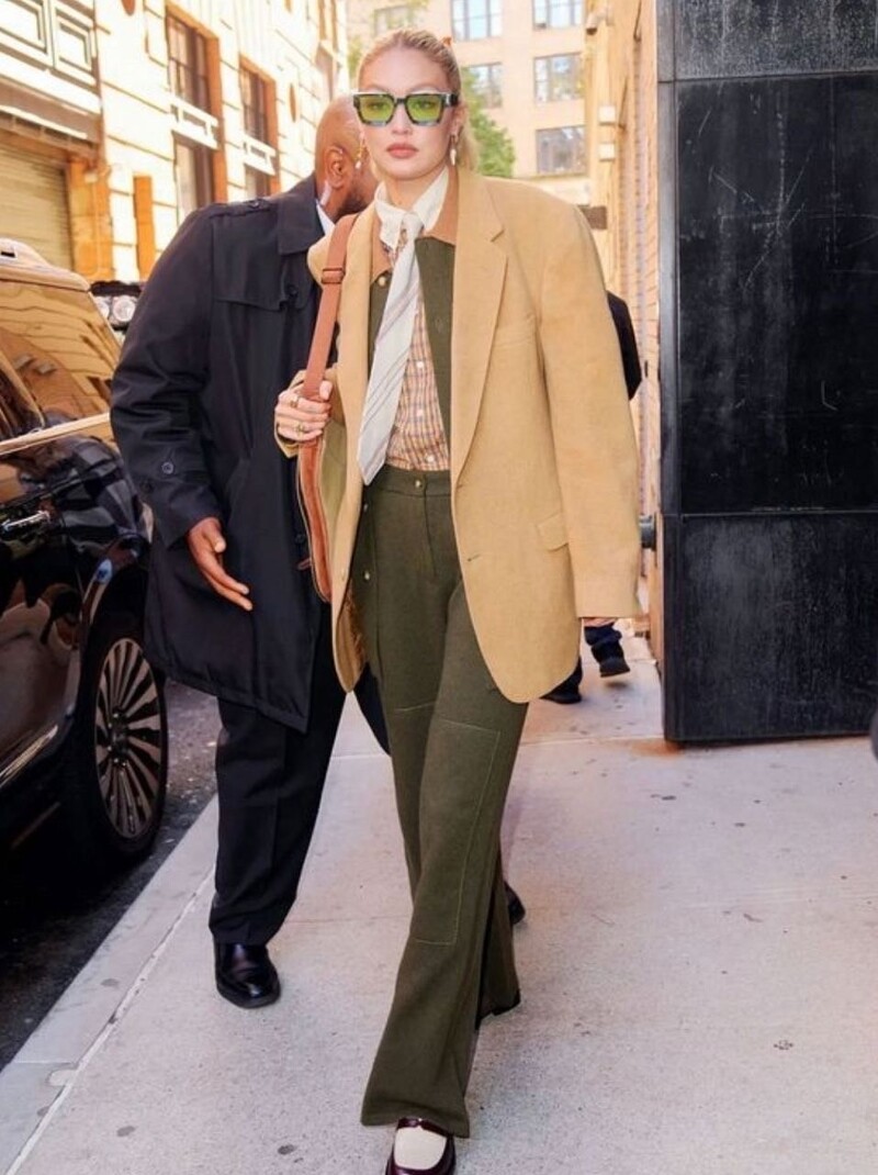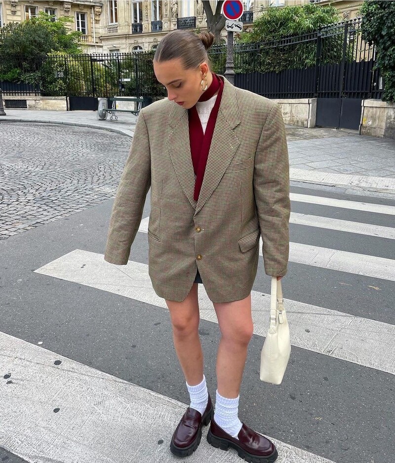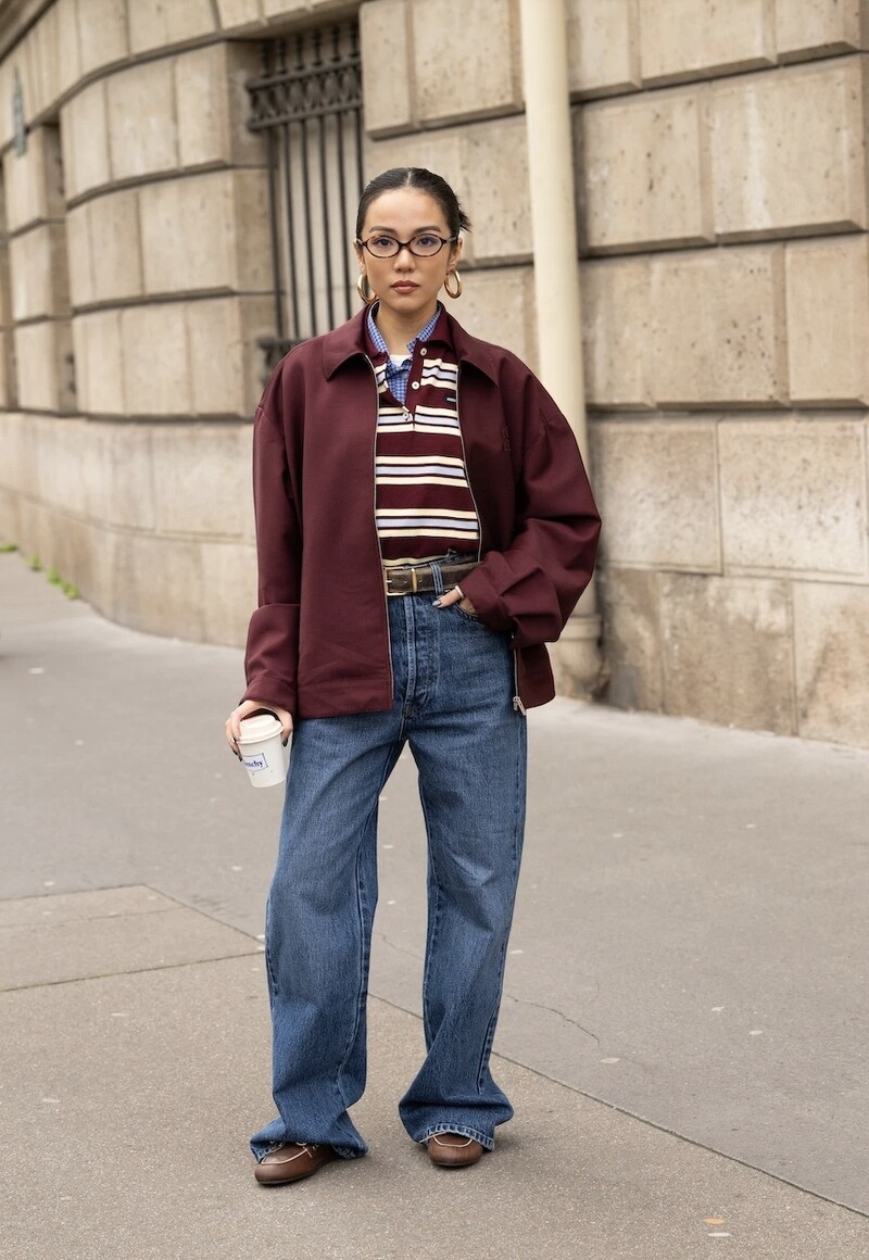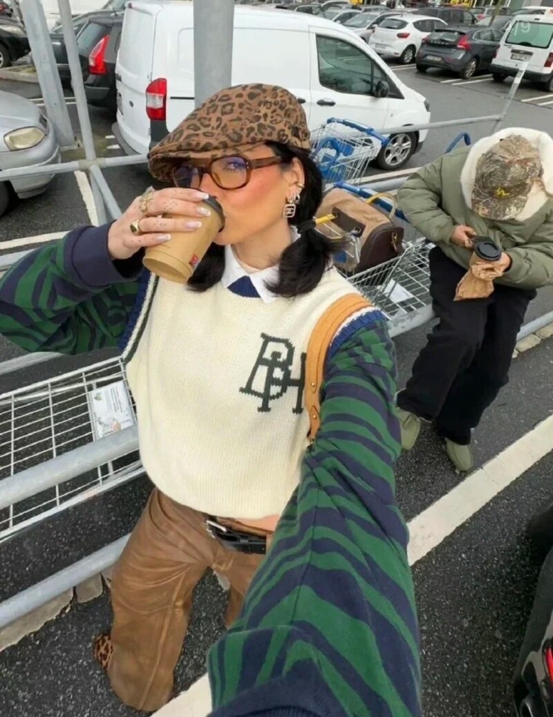 Grandpacore时常透过各种叠穿展现怀旧气息,以格子衬衫打底配上翻领背心,外层穿上宽大的oversize西装外套,在叠穿不同单品时可以掌握巧妙运用颜色,也要切记不要出现太多複杂的元素,否则容易使造型失焦喔。