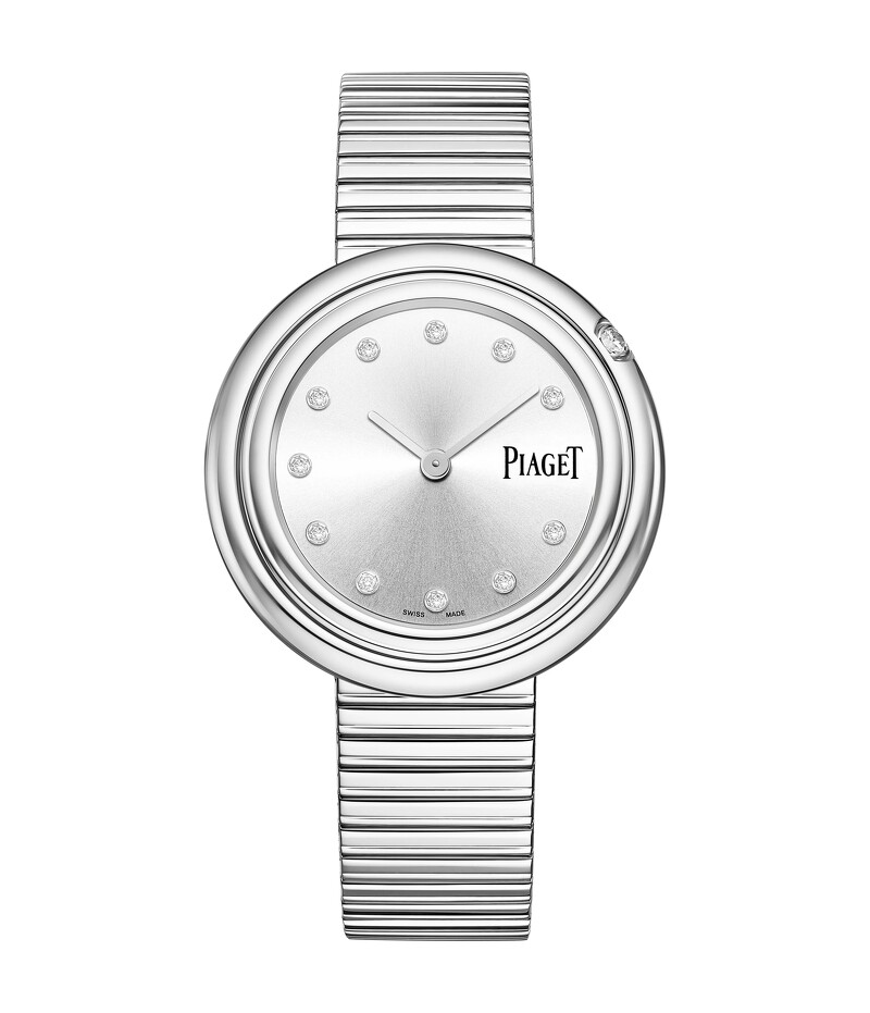 伯爵Piaget最经典的Possession系列2023年再添最新款 PIAGET Possession系列34毫米精钢钻石腕錶,建议售价NT$233,000